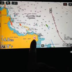 (Autopilot auf Standby, Gashebel in den Leerlauf bringen, dann gegebenenfalls rückwärts fahren und das Steuer nicht vergessen, Motor nicht stoppen, damit wir handlungsfähig bleiben, eieiCaptain)