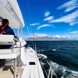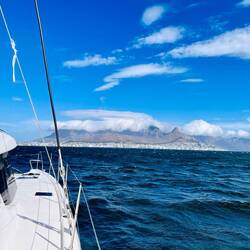 Der Atlantik war heute echt schräg, im wahrsten Sinne des Wortes. Wir haben vom Norden kommend Capetown bewundert, am Fuße des Tafelberges gelegen, der von Wolken liebkost wurde. (Hab ich das gerade wirklich geschrieben?) Die Bilder waren einfach atemberaubend. Ich hatte ja auch Zeit zu genießen. Der Wind traf uns mit 30 Knoten von vorn und so war es ein auf und ab und eintauchen und auftauchen, Arbeit für die wissende Crew und.. ..echt schräg halt. ..und geil.. 🙃