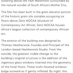 4,5,6 The Silo Hotel & Zeitz Museum of Contemporary Art Africa ..es gilt als das weltweit größte Museum zeitgenössischer afrikanischer Gegenwartskunst.. Ich bin fasziniert von dem Gebäude.
