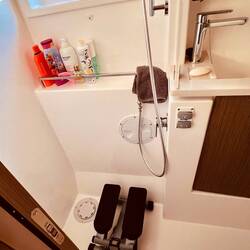 Der Stepper steht in meinem „Badezimmer“.. ..vor meinem Bett scheint er mir gefährlicher zu sein, beim übermüdeten ausdemBettfallen, bereit zur Schicht in der Nacht.. ..ich weiß noch nicht, ob ich auf See duschen gehe, die Wahrscheinlichkeit ist sehr gering.. 🥴