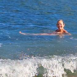 Nach dem Frühstück bin ich kurz ins Wasser es ist nicht sehr kalt.