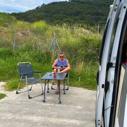 Nach der Wäsche sind wir bis zum Faro de Fisterra gefahren, es hat hier auf dem Hügel einen Platz für Womo's. Tolle Aussicht auf beiden Seiten sehen wir das Meer.