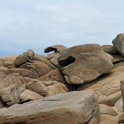 Jetzt stehen wir bei den Dünen auf einem Sandparkplatz. Ein kleiner Spaziergang am Strand eröffnet uns die Schönheit dieser Gegend. Die Steinformationen sind gigantisch und die Flora der Dünenもっと詳しく