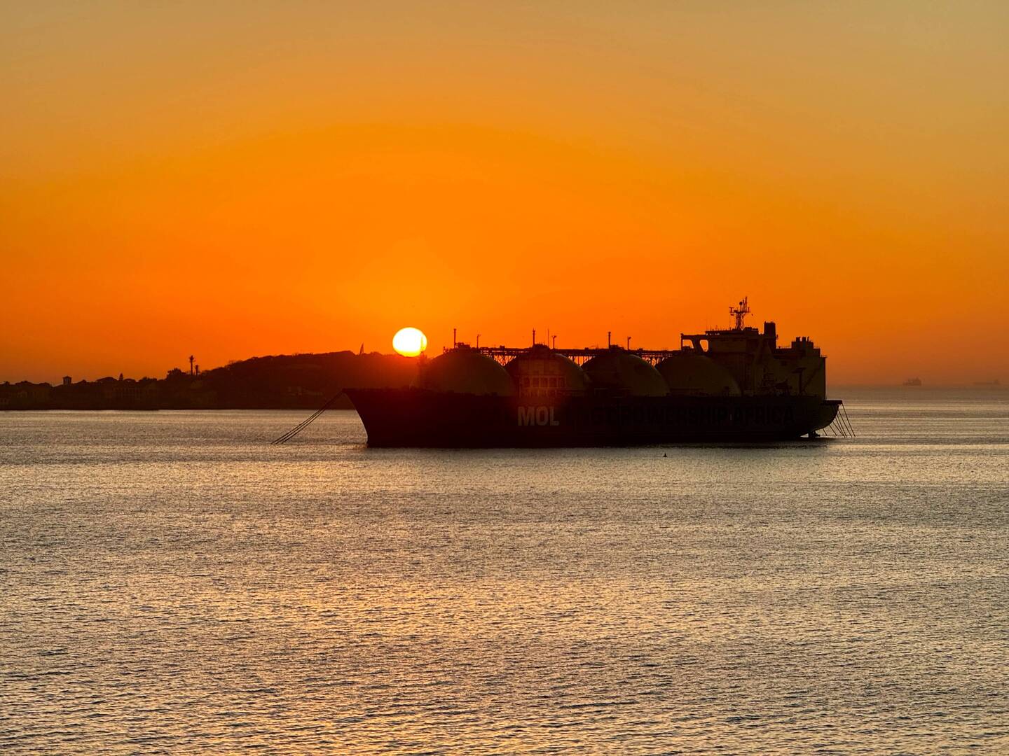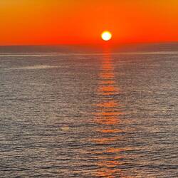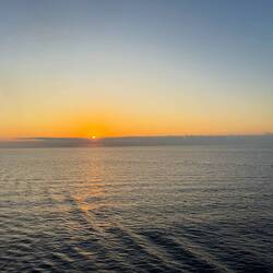 Heute Morgen auf linker Seite des Schiffs Sonnenaufgang und auf der rechten Seite der Vollmond 🌕.