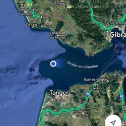 Viel Schiffverkehr in der Strasse von Gibraltar, vorwiegend westwärts fahrendeLæs mere