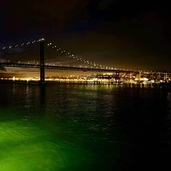 Fahrt bei. Leichtbewölktem Wetter der Algarve entlang mit prächtiger Einfahrt in den Tejo unter derLæs mere