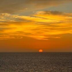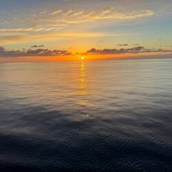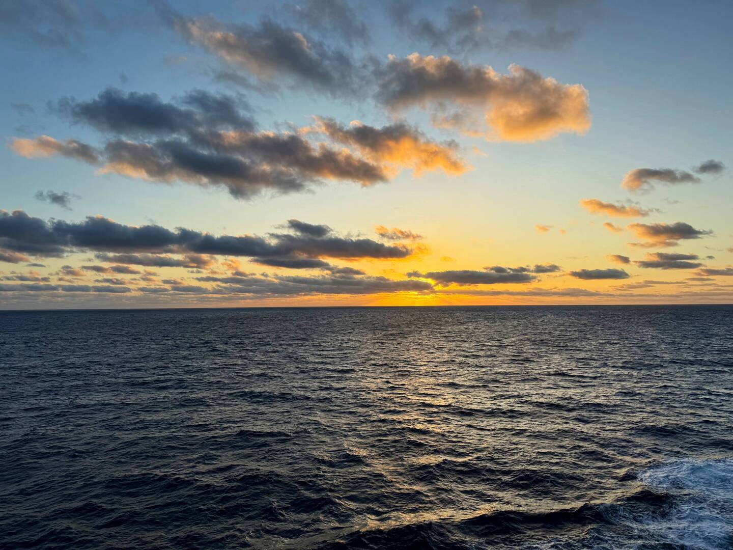 Heute von Sonnenaufgang bis Sonnenuntergang sehr schönes Wetter mit relativ ruhigem Seegang bei +/- 20 Grad.