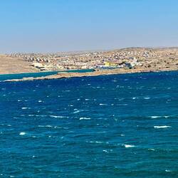 Heute morgen pünktlich um 07h in Walfisch Bay angekommen im Güter/Industriehafen. Wetter ist teilweise Bedeckt - mit 15–20 Grad recht kühl - Montbell tat Not.Læs mere