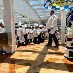 Vor dem Nachtessen Empfang der Gold/Silber reisenden Gäste mit Vorstellung der Crew Spitze und ihrem Werdegang - das sind schonLæs mere