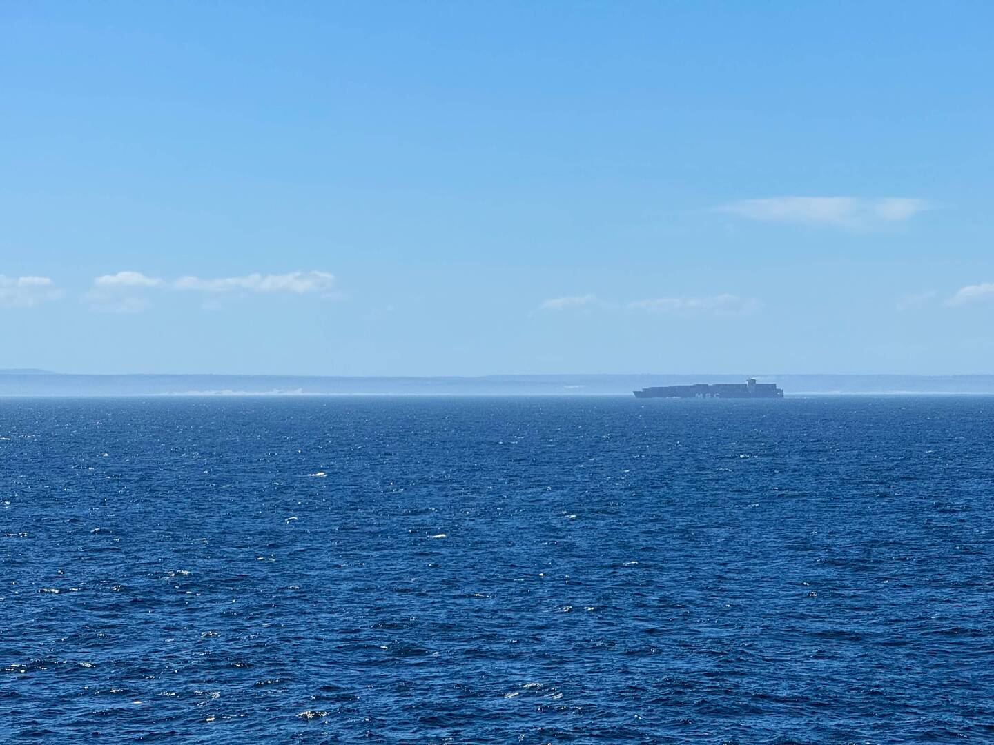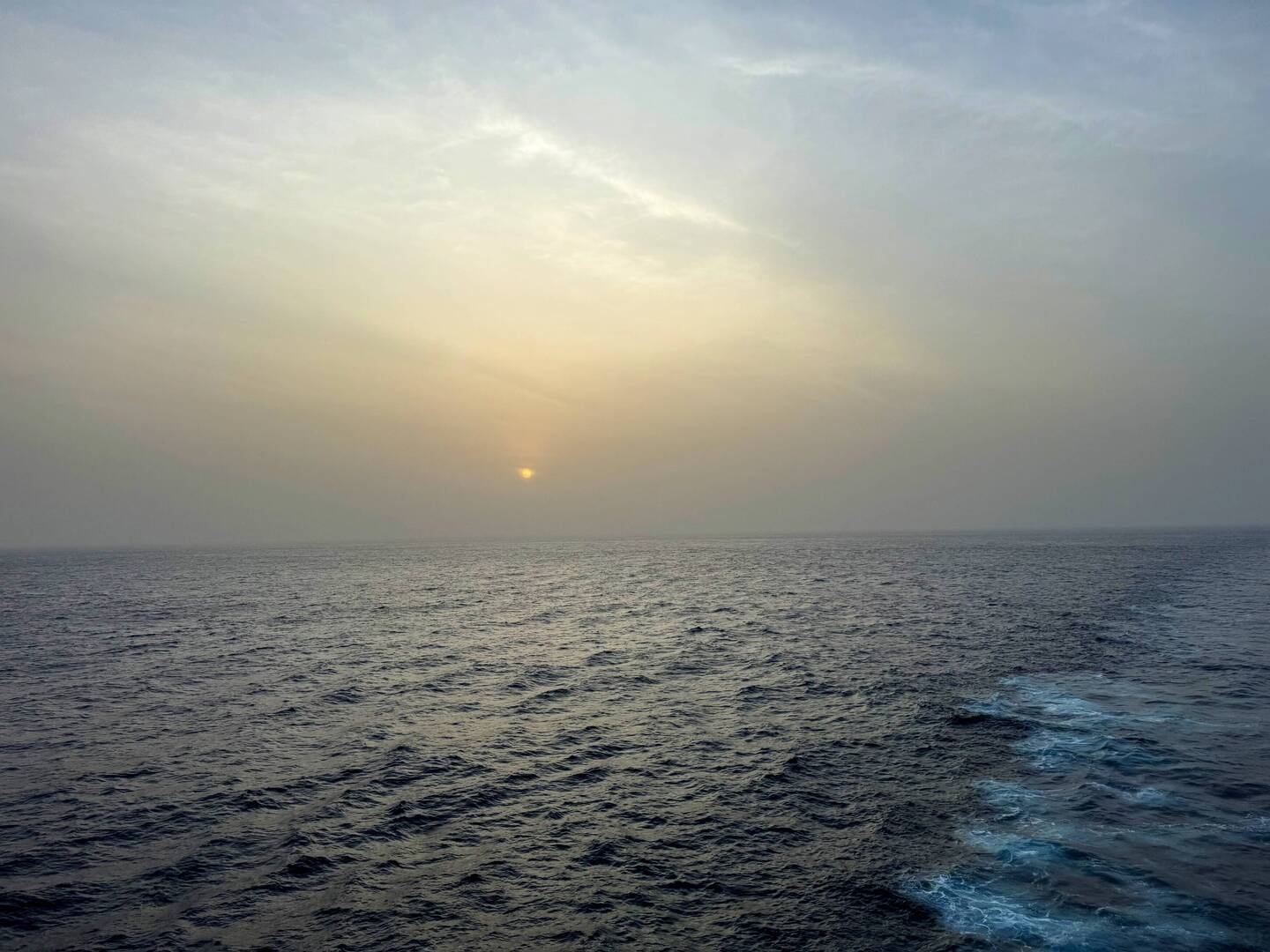 Heute ruhiger Seetag bei schönem Wetter 1 m Dünung und nachmittags 36 Grad.