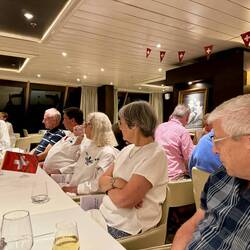 Heute Morgen recht kühler - sehr diesiges Wetter - mittlere Dünung. Je länger der Morgen war, desto nebliger wurde es - dann über Stunden Fahrt mit Nebelhorn. Heute wieder VorstellungLæs mere