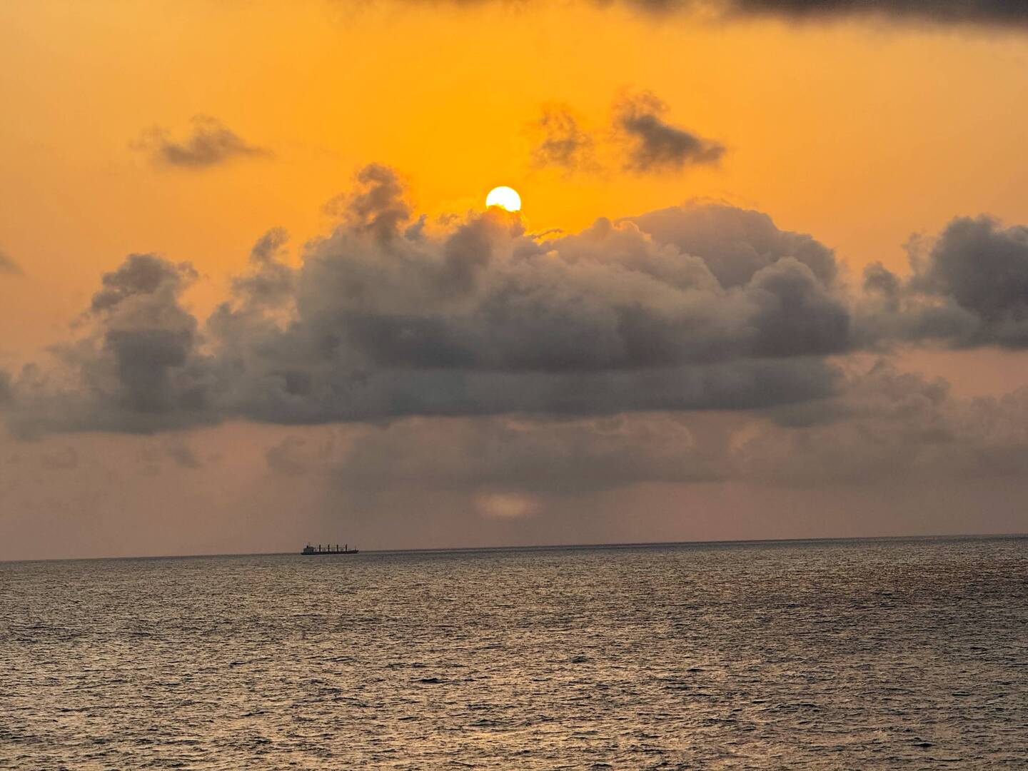 Heute wieder schöner Sonnenaufgang bei ruhiger See mit leichter Bewölkung und bereits 29 Grad am Morgen um 05:00 - kleine Dünung. Morgens um 08:00 bereits über 30 Grad und hoherLæs mere