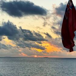 Heute morgen leicht bewölkt, wenig Wind 🌬️, wenig Dünung bei +/- 20 Grad - gegen Abend nahm Bewölkung zu.