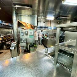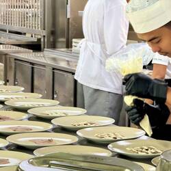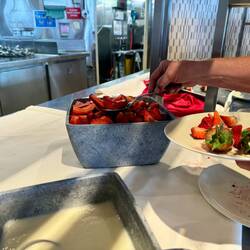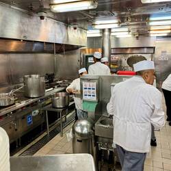 Heute ganzer Tag bei schön warmem Wetter auf ruhiger See mit Dünung von nur ca 1 m und Temperaturen zwischen 25 und 30 Grad. Vormittags hatten wir Gelegenheit die Anrichtungsküche auf Deck 7 mitLæs mere