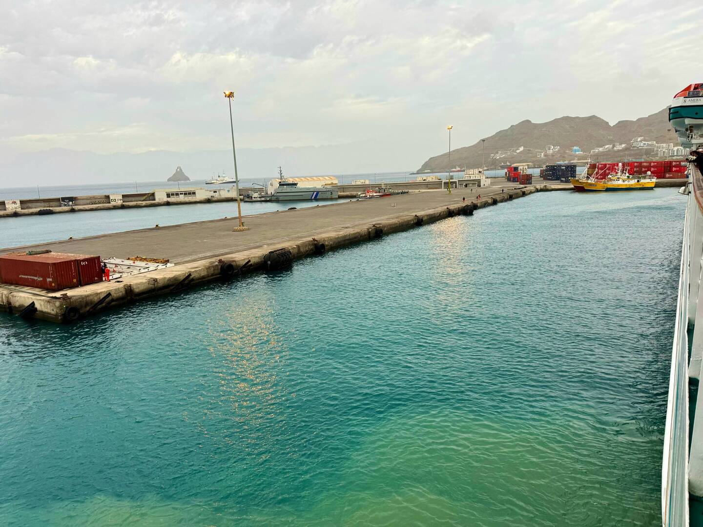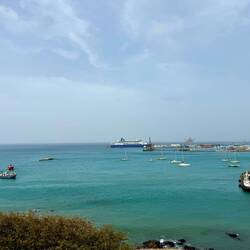 Heute Pünktlich in Praia um 8 h angelegt bei schönem Wetter und rund 28 Grad. Schiffsfreigabe erfolgt mit 30 Minuten Verspätung, weil Behörden soviel zuspät erschienen sind.