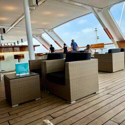 Heute ganz schöner ruhiger Morgen mit Sonne 🌞, endlich mal wenig Wind bei angenehmen 22 Grad, kleiner Dünung - einfach zum verweilen auf Deck 10.