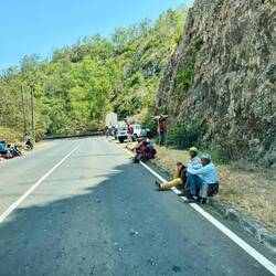 Heute Morgen bei weiterhin ganz schlechter Sicht pünktlich in Mindelo angekommen. Es hat ganz starke Windböen 💨. Vormittags auf eine Inselrundfahrt - Straße besteht über großeLæs mere