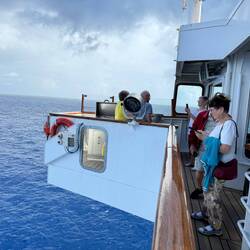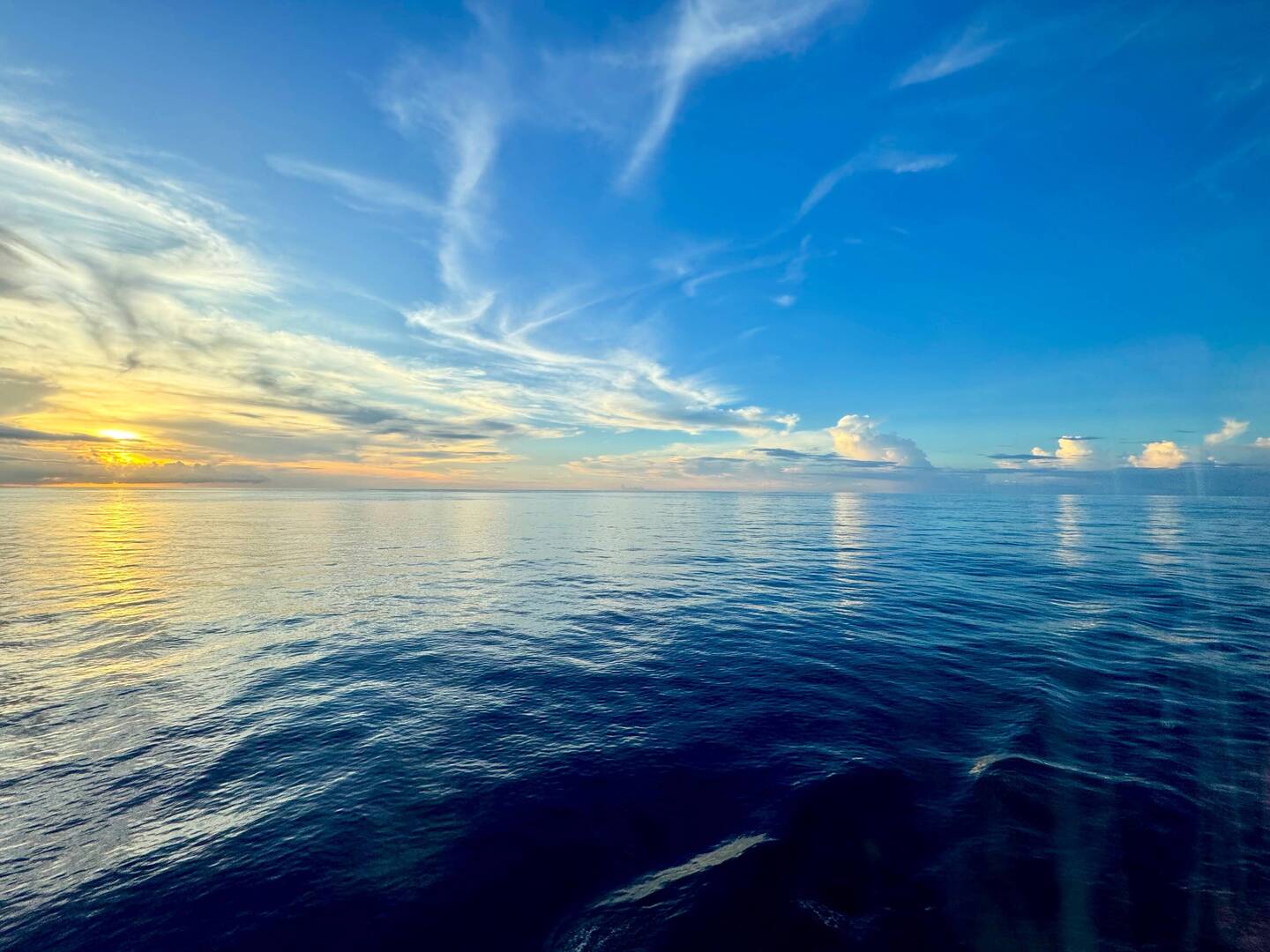 Heute ruhiger Seetag bei leichter Bewölkung und kleiner Dünung bei ständig über 30 Grad.