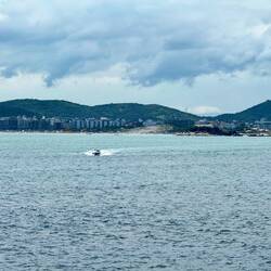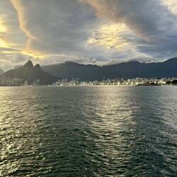 Heute Nachmittag Abend Fahrt von Illha Grande nach Rio de Janeiro. Die Fahrt war sehr schöutrotz immer wieder Bewölkung. Die Einfahrt nach Rio de Janeiro begann approximativ 17:45 kurz vorLeggi altro