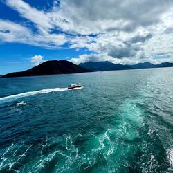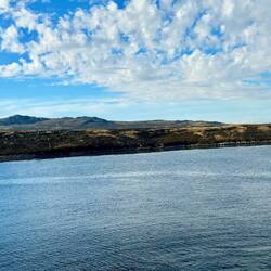 Heute Morgen relativ stark bewölkt, Dünung 2-2 1/2 m, starker Wind 🌬️ mit 50 kts. Ab ungefähr Mittag hat man auf der rechten Seite die Halbinsel Valdez (NationalLeggi altro