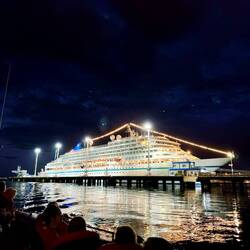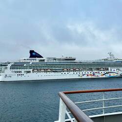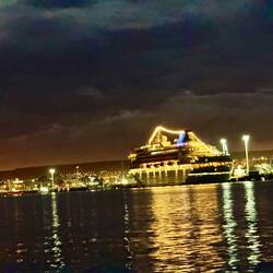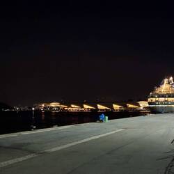 Heute morgen unmittelbar nach Sonnenaufganghat vor uns die MSC Musica mit ca. 2550 Passagiere am gleichen Quai hinter uns angelegt. Wetter ist bedeckt mit gelegentlichen kurzen Schauern soLeggi altro
