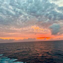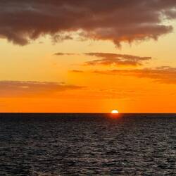 Heute Morgen noch schöner Sonnenaufgang - später Wetterverschlechterung - zum Teil stark bedeckt - ganzer Tag +/- 25 Grad mit hoher Luftfeuchtigkeit - Dünung ca. 1 m -Leggi altro