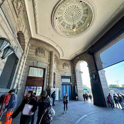 Heute Morgen strahlend schöner Morgen bei kühlen Temperaturen. Zusätzlicher Ausgang an And durch wetterbedingtes verspätetes Auslaufen. Fussmarsch ab Hafenterminal zu den vier Bahnhöfen vonLeggi altro