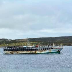 Heute Morgen um bereits 09:00h in Blanco Bay vor Port Stanley bei dichtem Nebel auf Reede gegangen, nachdem MS Amera mit Höchster Geschwindigkeit die letzten 36 h gefahren war und damitLeggi altro