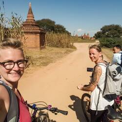 Insgesamt gibt es in Alt Bagan um die 3000 historische Monumente, 2217 davon sind Pagoden, Stupas und Klöster...alle in unterschiedlichsten Formen und Größen. Sie liegen teilweise recht weit auseinander, die Umgebung ist steppenhaft und die Wege sind sandig und staubig. Mit unseren Fahrrädern haben wir also alles richtig gemacht.