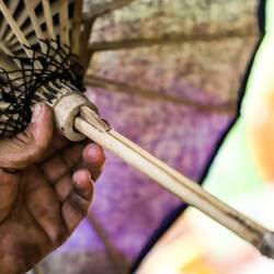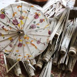 Auch hier gab es vieles Spannendes zu erkunden. Das Papier für die Schirme oder Laternen wird auch hier noch per Hand hergestellt, die Muster entweder gleich mit Frischen Blüten drauf eingetrocknetLes mer