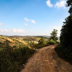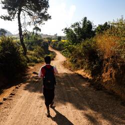 Wir gehen die meiste Zeit relativ flache "Wege" entlang, häufig auch einfach querfeldein über Äcker und durch Wälder. Uns wird schnell sehr warm, die Sonne scheint und es weht kaum ein Lüftchen, sodass wir ziemlich schnell ins Schwitzen geraten. Wunderschöne Landschaften und Ausblicke begleiten uns auf unseren Weg, wir halten oft an um Fotos zu machen, einmal auch in einem kleinen Kloster, in dem wir einen kleinen Snack und Grünen Tee gereicht bekommen von den Mönchen. Imun übersetzt uns fleißig was die Mönche wissen möchten und sagt es sei üblich hier, dass man etwas zu essen und zu trinken bekommt, wenn man eine Pause macht vom Arbeiten oder eben Wandern. Wir bedanken uns mehrmals und ziehen weiter. Wir wandern durch viele kleine und sehr urspüngliche Dörfer, viele der Einwohner ziehen sich in ihre einfachen Hütten zurück, sie haben Angst vor den Fremden, so wird uns berichtet. Einige sind aber auch sehr interessiert und fragen nach, wo wir herkommen, was unser Ziel ist und aus welchem Land wir stammen. Kleine Kinder winken uns schüchtern zu, manche freuen sich aber auch überschwenglich...wirklich eine sehr interessante Erfahrung.