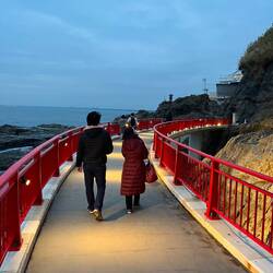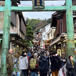 In the afternoon we drove to Enoshima island which was a fabulous seaside island. The streets were lines with markets and seafood stalls. We tried octopus rice crackers which are a typical snack of the area. We then hiked up to see the temples and beach side caves.