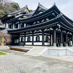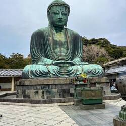 The next day, we woke up and drove to Kamakura. First we had a delicious brunch of whitebait on rice. I had mine booked but Alex tried a mix of raw and boiled whitebait. The area is known for it‘s fresh caught whitebait. Then we visited Kamakura Hasedera which was a large temple set amongst beautiful gardens. Next, we visited Kotokuin temple which is home to one of Japan’s largest Buddha statues.