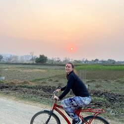 After another long day of travel, we arrived at a home stay just outside Chitwan National park. The home stay was located on a small farm, with lots of ducks, chickens, goats and cows. We then took a bike tour through the village. The village was made up of simple yet colourful homes, usually growing their own crop (mostly mustard). We visited a huge lake to enjoy Chai Masala as the sun set.
