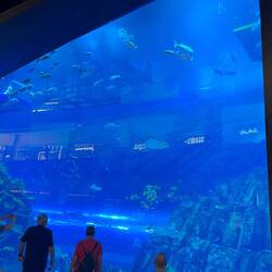 Next we visited Dubai mall, to see the aquarium (or at least the outside of it). The aquarium is the largest suspended aquarium in the world. Next we had a look at the human waterfall in the mall. Then a quick visit to the Dubai fountain - we only caught the end of the show, but there was a lovely view of the Burj Khalifa from the base.