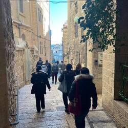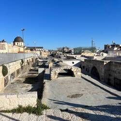 The morning started when we arrived in Jerusalem, which is around an hour drive from Tel Aviv. Jerusalem’s old town is a walled city made up of four quarters - the Muslim, Jewish, Christian and Orthodox quarters. First we visited the Western Wall which is significant as it is the closest and oldest remnant of the Temple Mount, which was built by Solomon on land purchased by his father King David. The site is significant as it is where Abraham came to sacrifice his son Isaac. Later, the temple was burnt down by the Romans and the Western Wall was the only remains. Now, a mosque sits on the site of the original temple and until the reunification of Jerusalem in 1967, Jews were denied access to the wall. Now, Jews from all around the world come to visit, touch and pray at the wall, making it the most important historical site for Jewish people. During our time in the Western Wall plaza, we had the opportunity to touch the wall.