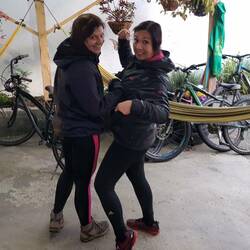 Die Strecke den Berg hinab war kurvenreich, steil, mit Schlaglöchern übersäht... also perfekt für eine Downhill Tour. Das Panorama konnten wir während der Fahrt kaum genießen, da wir uns krass konzentrieren mussten, nicht das falsche Schlagloch oder einen lockeren Stein zu erwischen. Bei La Carbonera angekommen, machten wir eine Pause, wanderten durch das Gelände und ließen den faszinierenden Anblick der Wachspalmen auf uns wirken. Als es richtig doll anfing zu regnen mussten wir uns unterstellen und aus dem "Picknick with a view" wurde ein Picknick unter Wellblechdach. Nach einer kleinen Stärkung ging es wieder auf dem Truck den Berg hinauf, um auf der anderen Seite nun den ganzen Weg bis nach Salento wieder auf dem Bike runterzufahren. Diesmal ging es weniger um die Aussicht, als um die Downhill Erfahrung. Unserem Tourguide hinterher, ging es, mit rasantem Tempo, durch Matsch und Pfützen den Berg hinab. Die Kombination aus Nervenkitzel und Konzentration hat unfassbar viel Spaß gemacht. Wieder in Salento angekommen sahen wir aus, als wären wir in eine Matschgrube gefallen, aber es hat sich sowas von gelohnt die Tour mitzumachen. Die Herausforderung bestand jetzt nur darin, die Klamotten für die Wanderung am nächsten Morgen wieder trocken zu bekommen...