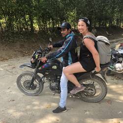 Da es bereits nach 17:00 war und die Dämmerung bald begann, fanden wir nach knapp 8 Stunden Wanderung für die letzten Meter gottseidank drei Motorradtaxen, welche uns zurück in unsere Unterkunft brachten. Die Fährt bergab löste bei uns allen aufgrund der steilen und uneben Straßen einen Adrenalinschub aus, von dem wir uns dann beim wunderschönen Sonnenuntergang erholen konnten.