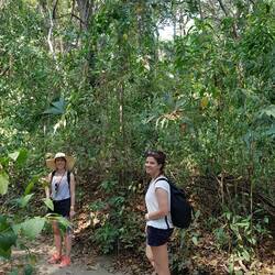 Der zweite Tag beginnt mit einer privaten Yoga Session, leckerem Frühstück und ein paar Sonnenstunden am Strand. Am nachmittag entscheiden wir uns spontan zu einer River Tubing Tour (auf Reifen einen Fluss entlang paddeln). Mike den wir am Vortag von drei anderen Deutschen als Guide empfohlen bekommen haben, holte uns kurzerhand mit drei Mototaxis ab. Jeder von uns bekam einen Reifen umgehangen und los ging es mit den Motorrädern in den Dschungel. Im Dschungel angekommen mussten wir noch ca. 30 Minuten durch schöne, aber auch ziemlich steile Dschungellandschaft wandern, um an den Punkt im Fluss zu gelangen, an dem wir einsteigen konnten. Mit Flip Floos und einem überdimensionalen Reifen über der Schulter nicht ganz unanstrengend...