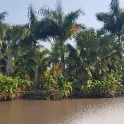 Der Weg führte uns auf einer sehr dünnen Landzunge vorbei an tollen Mangrovenwäldern. Leider aber auch an sehr armen Gegenden, in denen die Häuser nur halbe Dächer haben und an der Hauptverkehrsstraße stehen. Ihren Lebensunterhalt scheinen die Menschen mit Fischerei und durch den Straßenverkauf von Snacks und Getränken an die durchfahrenden Busse und Autos zu verdienen. Sehr trostlos wirkt die Gegend. Vereinzelt sieht man Fußballplätze oder Billardtische, die ein wenig Zerstreuung bieten.