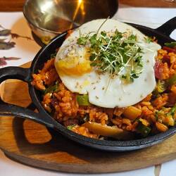 I had a Jeju Island cocktail, beokibap(?) And some teokki(?)