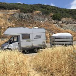 Kurznickerchen nach 12 Stunden Anreise am Fährhafen vor der Öffnung des Büros. Danach Buchung der Fähre nach Olbia - die Hälfte Fahrstrecke wie ursprünglich geplant (Cagliari) dafür 50 % Zuschlag 🤣