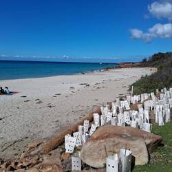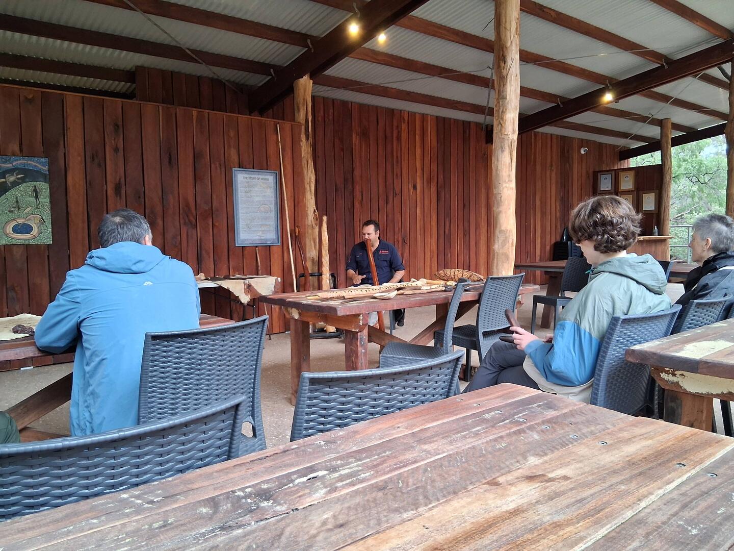 We had an excellent guided tour covering the flora, the six Nyoongup seasons, firesticks, musical instruments including a demonstration on a didgeridoo, boomerangs and other weapons, tools, and the creation story of the Wadandi clan which was linked to the sea, cave and ridge of the area.