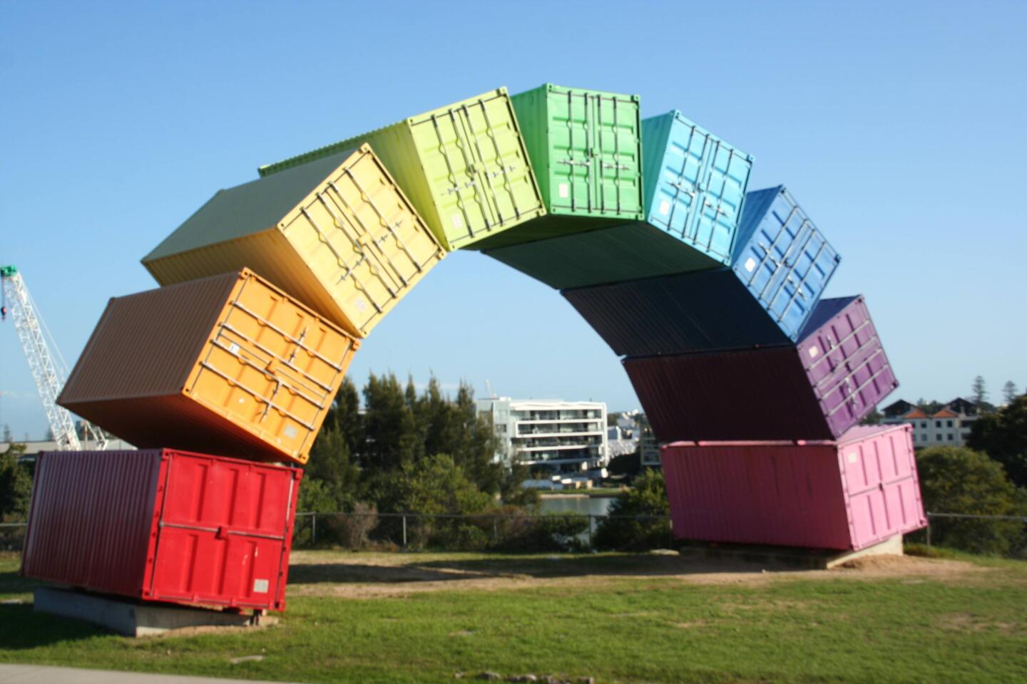 After checking out of the Hougoumont Hotel on another sunny day, we drove south out of Fremantle, passing the rainbow container arch.