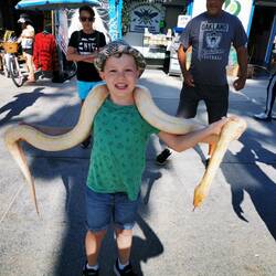 Am Nachmittag machten wir uns zu Fuss auf den Rückweg. In Venice ist Stand an Stand mit touri Ware. Sogar ein Schlagenbändiger war da un Janis musste natürlich die Schlange nehmen.