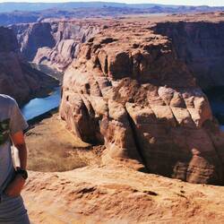 Halbzwölf Uhr sind wir dann mit der Gruppe "Orange" und einem offenen Geländefahrzeug zum Antelope Canyon aufgebrochen. Es war eine sehr staubige und holprige Angelegenheit. Wir fuhren gut 20Baca lagi