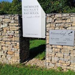 Start war am Bahnhof Bad Sulza, genauer in Bergsulza an der DJH. Das Weintor und die Sonnenburg lagen wie der ganze Ort in der Morgensonne. Es ging dann durch die Weinberge von Bad Sulza, wo dieBaca lagi