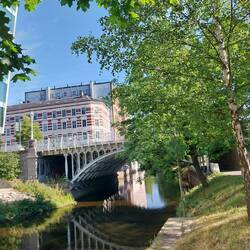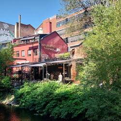 Von der Jugendherberge ist es nicht weit zur Akerselva, dieser Fluss prägt das Stadtbild bis heute, viele alte Brücken und Fabrikgebäude erzählen von der langen Nutzung der Wasserkraft, wie bspw.Lue lisää