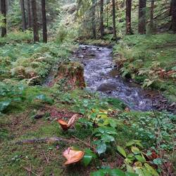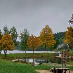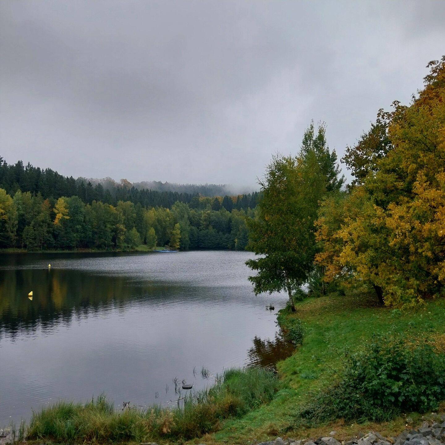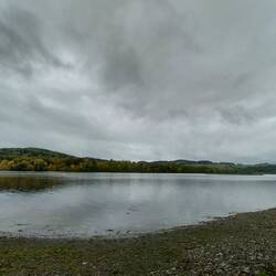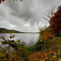 Wanderung über die Rißfälle und oberen Floßgraben, Muldenberg-Talsperre nach Schöneck. Der Bus (SEV RB1) fuhr pünktlich ab Bhf Schöneck nach Falkenstein. Dort war der Weg zur Talsperre leichtMeer informatie