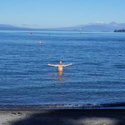 Der Lake Taupo ist Neuseelands größter See (46 km lang, 33 km breit, 193 km Uferlinie, 616 km2 Fläche, 186 m max. Tiefe) und liegt im Krater eines Vulkans.